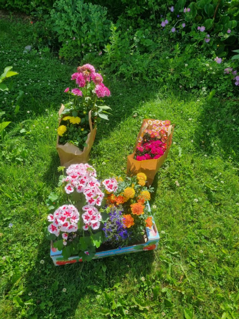 Istutimme pihaan muutaman omenapuun lisää, mutta kukkia ja marjapensaita meillä oli jo alunperin aika hyvin. Pihasta on pidetty huolta ja sitä on selvästi tehty suunnitelmallisesti, sillä eri kukat mitä sinne on istutettu kukkivat vuorotellen.
