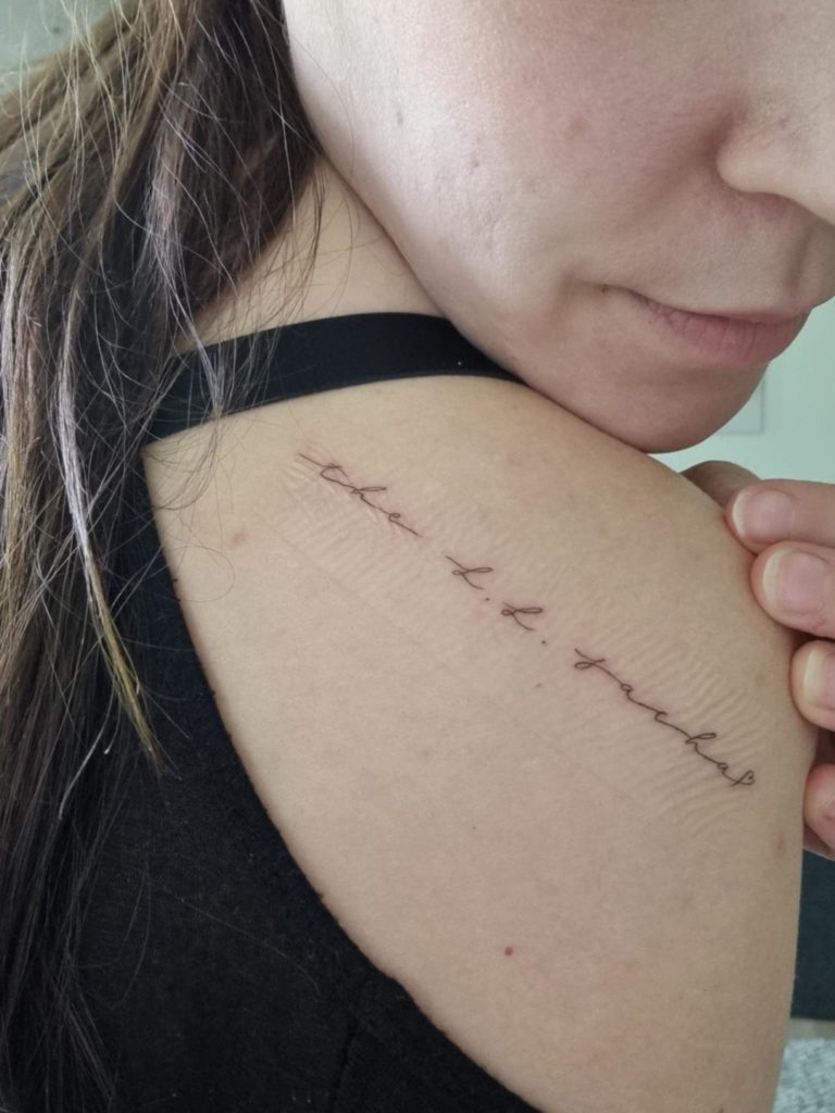 Käväisin keväällä myös hakemassa toiseen olkapäähäni tekstin, joka on tavallaan ollut siinä jo yli 20 vuotta, nyt se vaan näkyy muillekin.