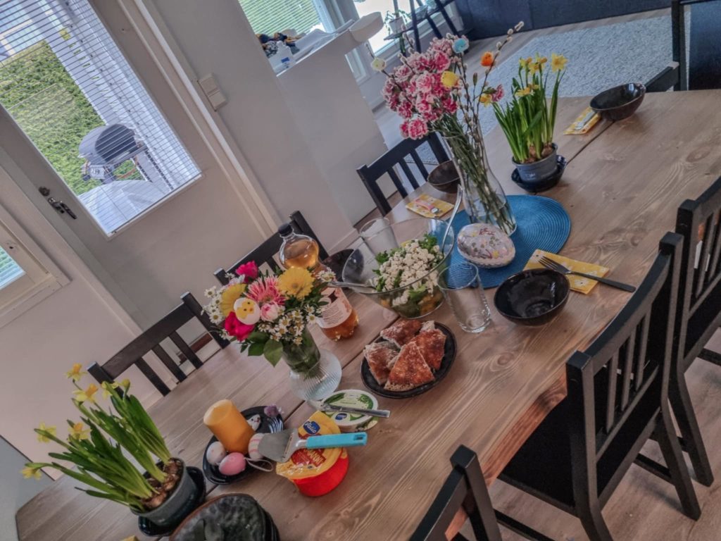 Omakotitaloasuminen kahdeksan Helsinki-vuoden jälkeen on ollut etenkin minulle valtava ilo ja helpotus. Täällä voi taas hengittää omassa rauhassa. Pihamme on suojaisa, eikä talo näy edes pienemmälle tielle jos ei tiedä sitä etsiä. Viereinen metsä on ihana, ja se alkaa takapihalta.