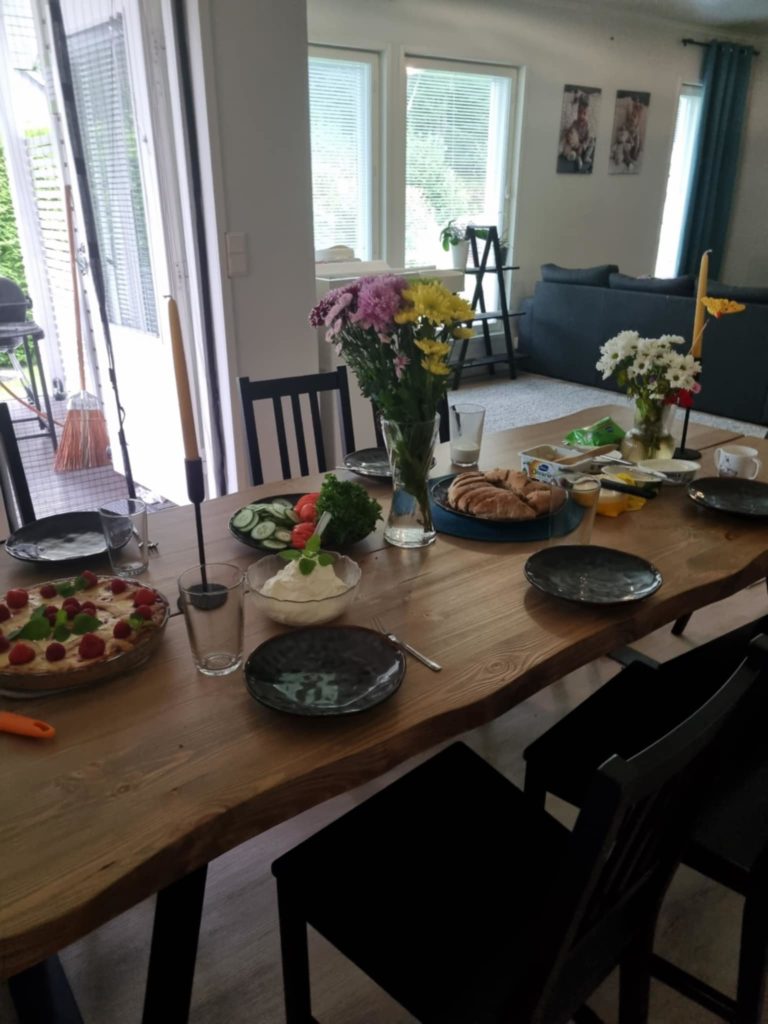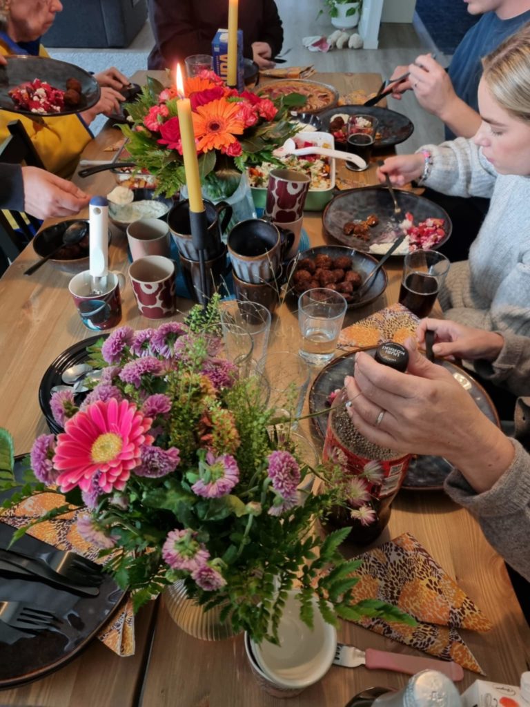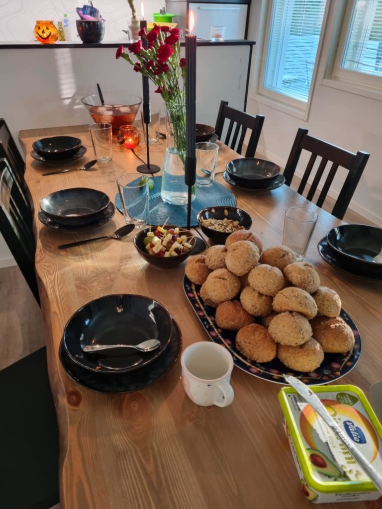 Joku joskus sanoi että meillä juhlitaan paljon, ja ehkä se onkin niin. Minusta on kuitenkin mukava katkaista arkea aina välillä, ja sen vuoksi olen yrittänyt panostaa siihen että meillä vietetään sekä kaikkia vuodenpyörän kahdeksaa juhlaa, että myös esimerkiksi syntymäpäiviä, täydenkuun juhlia, äitienpäivää, isänpäivää… Kaikkea mahdollista! Nyt on myös tilaa talossa, joten ollaan mielellään kutsuttu myös sukua ja ystäviä meille viettämään juhlia.