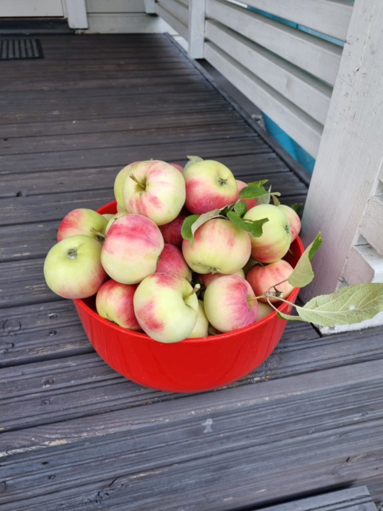 Lohja on tunnettu omenoista, sillä täällä on omenapuita joka pihassa! Niin meilläkin, ja omenapuu pihassa olikin se asia mikä sai minut tänne ensimmäisen kerran talonäyttöön tullessamme sanomaan miehelleni jo pihassa että nyt olen valmis tekemään tarjouksen. Kahden vuoden talonmetsästyksen jälkeen se oli se tunne minkä sain jo tuossa pihalla. Sisälle päästyäni kodinhoitohuoneessa pidättelin jo kyyneleitä koska tiesin tulleeni viimein kotiin. Ja omenoita me saimmekin viime kesänä aivan valtavia määriä!